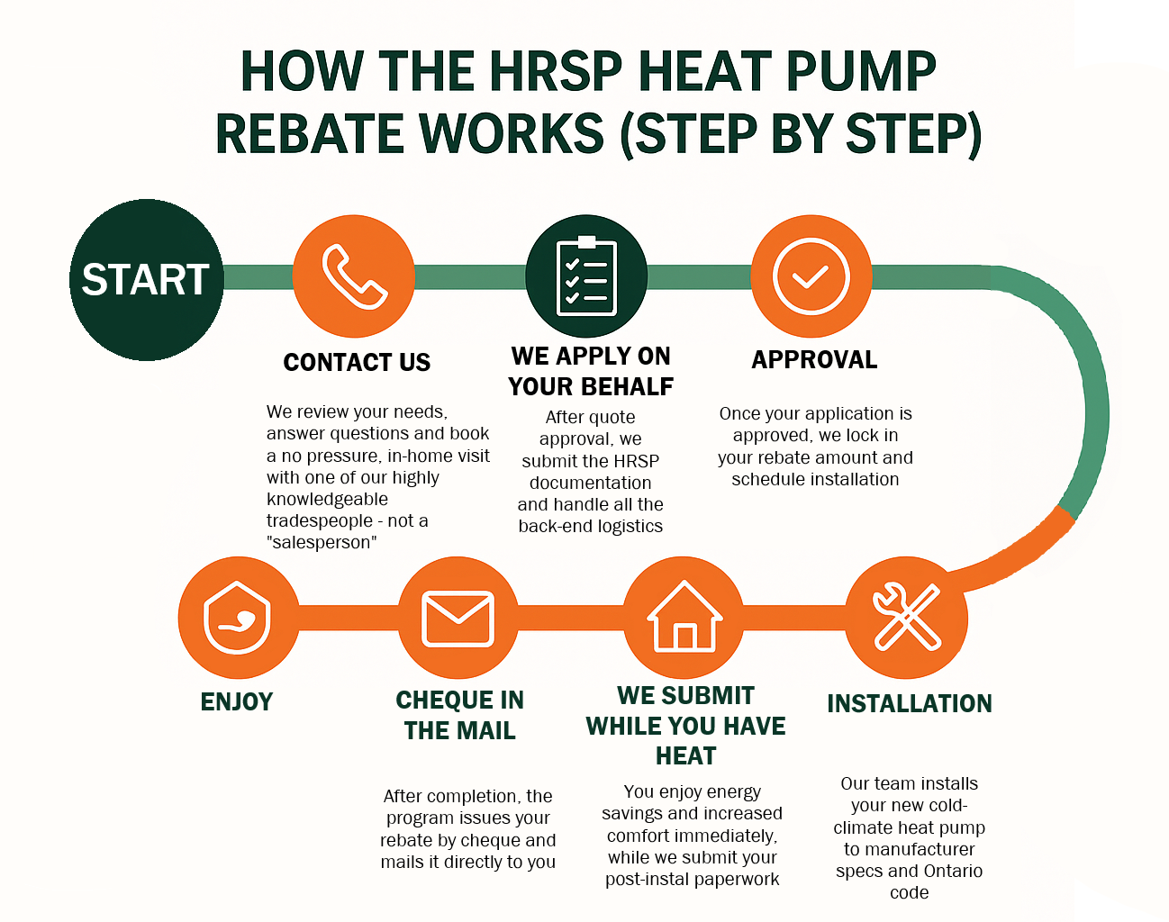 On this page, we’ve summarized the main rebate program available in Ottawa, Home Renovation Savings Program (HRSP) – Ontario’s current primary heat pump rebate.